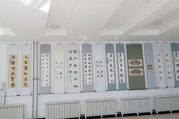 本次书画展得到了广大教职工的大力支持和积极响应,共征集到了50余幅书画作品,在集中选优的基础上展出40幅。参展的参展作品虽风格迥异,篆、隶、行、楷、草种类齐全,内容丰富,寓意深刻,都铺陈着“修德健智强身,爱国勤业持家”的教义。